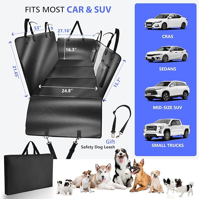 - 【Upgraded Anti-Scratch PU Leather】FULIDOUER backseat extender for dogs is upgraded with cat scratch leather material and a layer of cushioning cotton. The surface of the cover is more resistant to scratching and abrasion, and the waterproof strength is higher and will not leak. The PU material increases the softness of the surface, the dog will not feel hard when stepping on it. Unlike PVC, PU has no odor, and PU leather also has some anti-slip ability. Overall more solid tough and durable.
