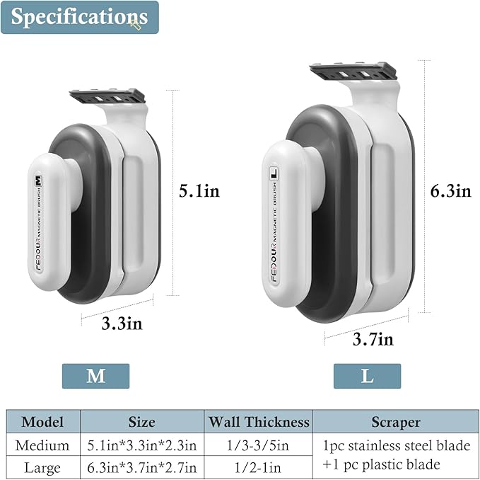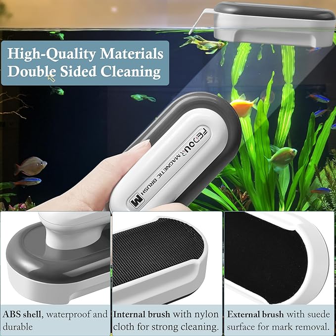 - 【High Quality Wear-resistant Material】The magnetic aquarium cleaner brush uses high-quality ABS surface material, which is safe for fish and aquatic environments. The algae scraper in the aquarium is brushed with nylon cloth, with a wavy design and strong cleaning power. The external brush is made of soft suede surface, which can remove small water stains and fingerprints, making the fish tank clean as new.