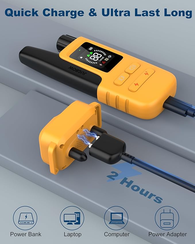 - 【Incredible Battery Life & Quick Charging】 Charging via USB, 2-in-1 fast charging only 2 hours to be fully charged. This dog training collar with remote provides battery life that lasts for a long time, the e collar can last up to 35 days of standby time and the remote 45 days!