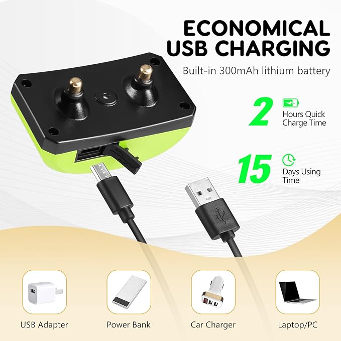 - USB Rechargeable: The dog bark collar can be fulled charged with USB charging cable within 2 hours, and the using time up to 15 days.