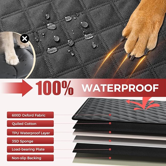 - Sturdy material and non-slip, the dog back seat extender is made of 6 +4 layers of high-quality materials. 4X4 density oxford cloth is stronger and easy to clean. PU coating 100% waterproof layer. PP cotton layer makes it more comfortable for dogs to lie on it. There is a non-slip backing layer at the bottom to make the seat cover more stable and will not slide.