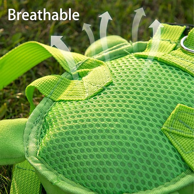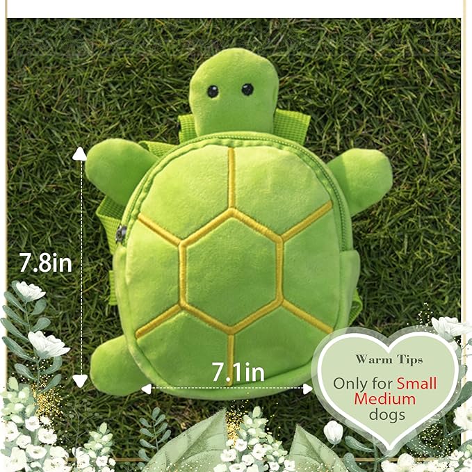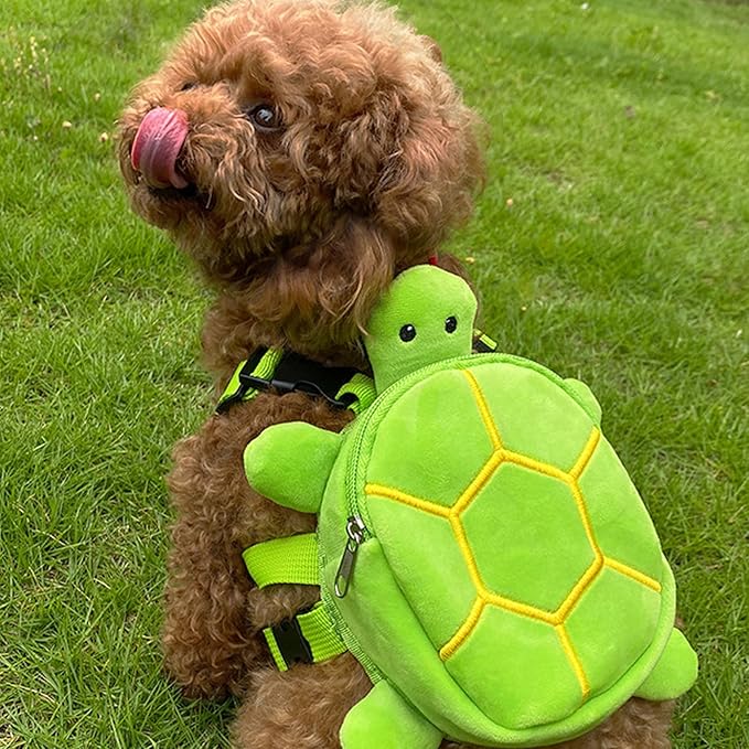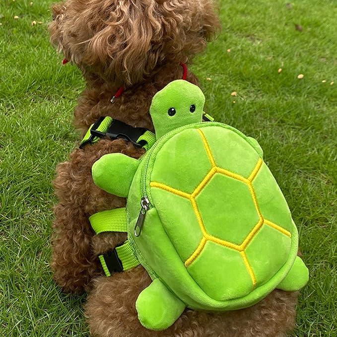 - The the neck and chest part of puppy harness backpack are both adjustable, making it comfortable to wear and designed for easy securing and adjustments. Durable quick-release buckles, easy to wear and take off. And under the turtle backpack has a stainless steel sturdy harness hole, so you can put your leash on it.