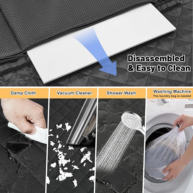 - 【Easy Installation】 This car dog bed is a breeze to set up and remove thanks to adjustable straps and buckles. For added security, it includes a dedicated dog seat belt. Simply clip one end to your pet's collar and secure the other to the seat buckle.