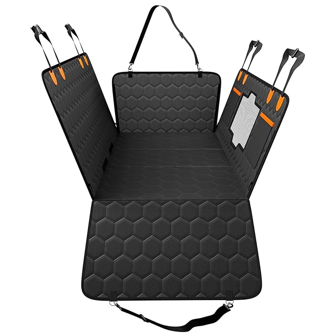 - Stable & Sturdy Design: The bottom features a strong honeycomb board that supports up to 350lbs, making it an ideal Dog Car Seat Cover for Back Seat Bed. It provides a flat, stable surface, perfect for dogs of all sizes, enhancing comfort and safety during travel.