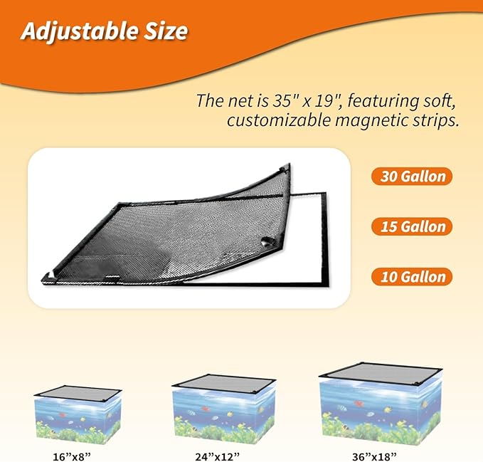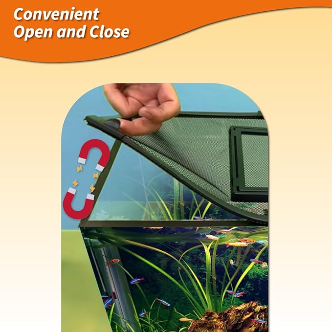 - Durable Mesh with Enhanced Ventilation: Our high-quality netting is not only strong and corrosion-resistant but also designed to withstand the heat from aquarium heaters. Provides ample ventilation and promotes air circulation, creating a healthy environment for your aquatic pets.