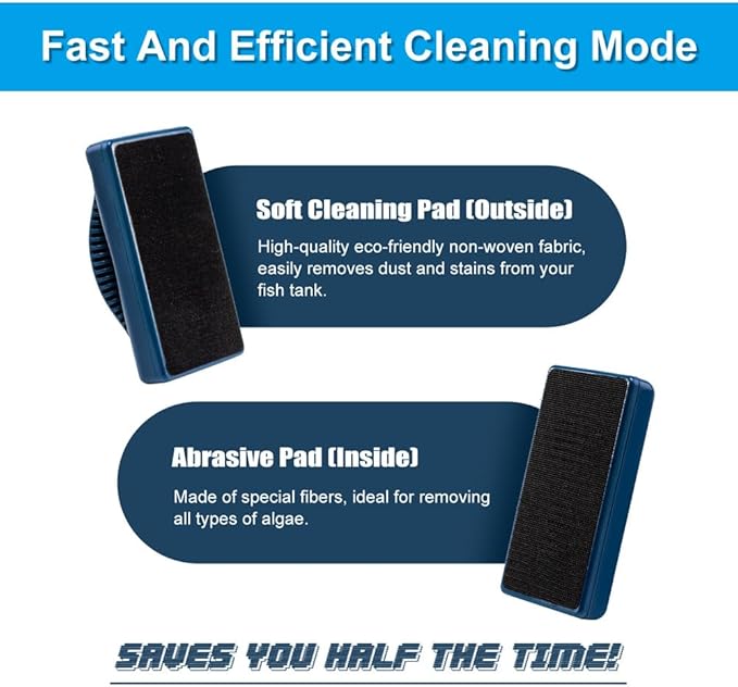 - 【Fast And Efficient Cleaning Mode】: DaToo Fish Tank Cleaner has a soft cleaning pad made of high-quality eco-friendly non-woven fabric on one side and an abrasive pad made of special fibers on the other side, ideal for removing all types of dust and stains on your fish tank. No need to get your hands wet, just move the handle outside of the fish tank and you can quickly complete the daily cleaning of aquarium, saving you half of your time!