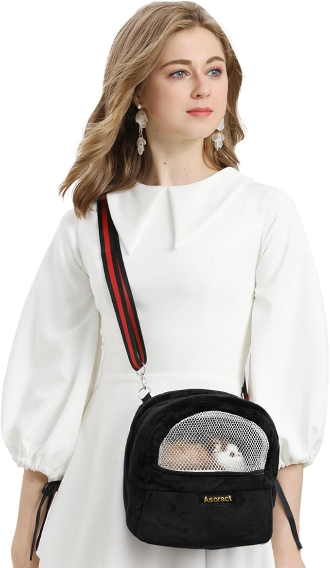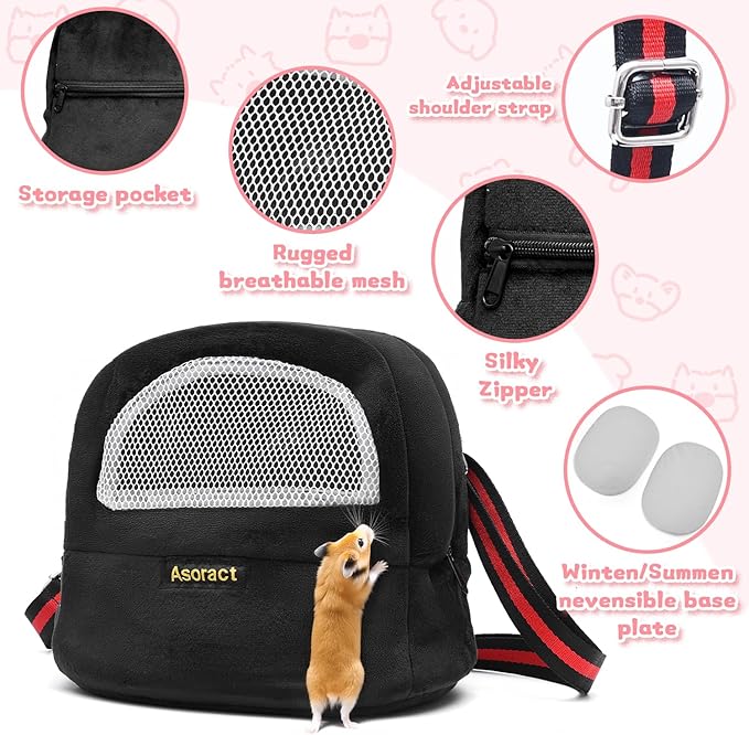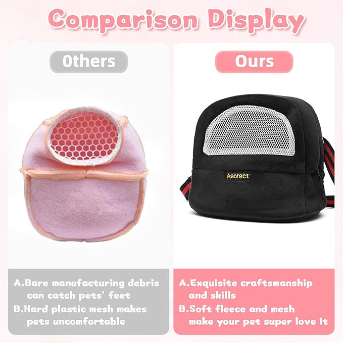 - ✔【HIGH QUALITY】: This pet carrier bag hamster is composed of durable plastic mesh + super soft velvet outer layer + high-quality sponge middle layer + comfortable thin velvet lining, safe, warm, excellent touch and has excellent Breathability, I believe your pet will fall in love with it and enjoy this warm home.